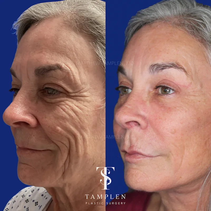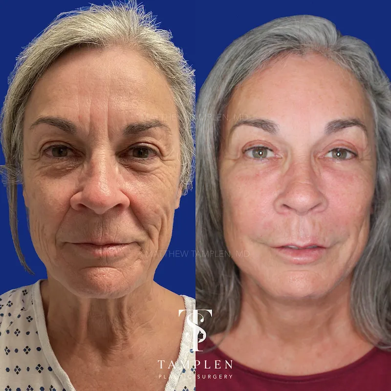 A perfect result just 5 months after endoscopic brow lift, upper & lower blepharoplasty, and extended deep plane facelift. Her scars are invisible, the neck bands a distant memory, and volume has been restored in her mid face. Youthful and rejuvenated, we turned back the clock 20 years 🤩
