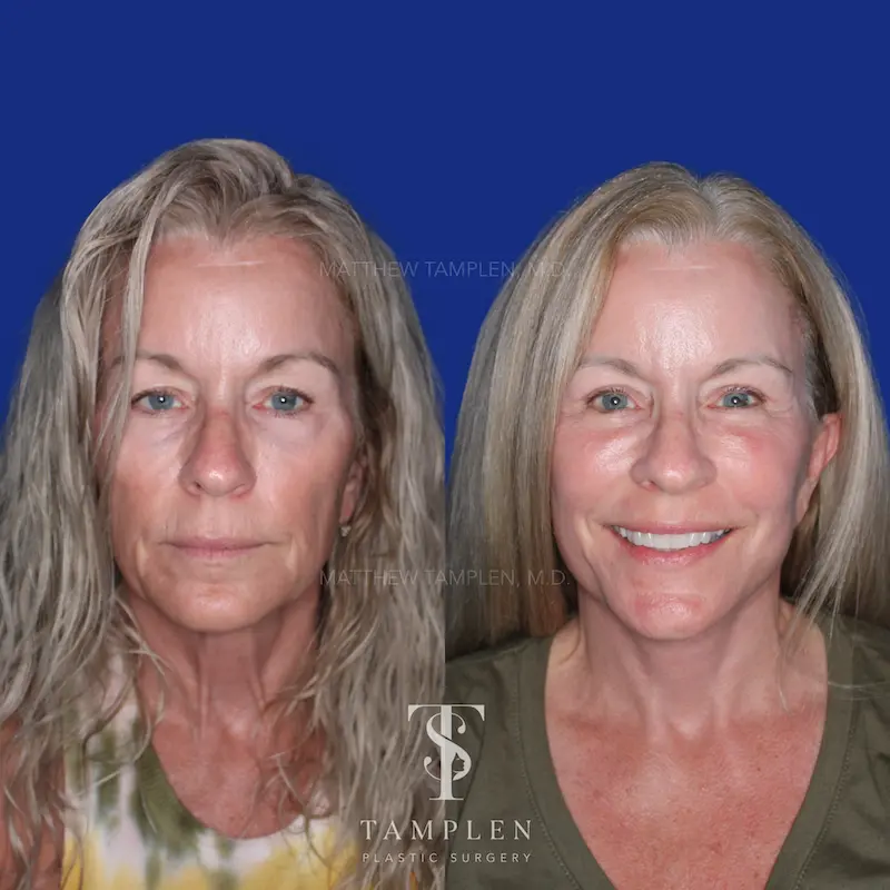 Just 6 weeks after facial and eyelid rejuvenation with my signature preservation deep plane lift, lateral brow lift, upper blepharoplasty, fat transfer, and CO2 laser. She is absolutely thrilled with her results and smooth recovery - and so are we!