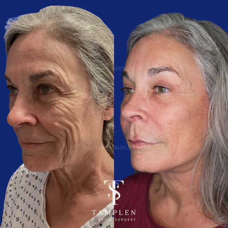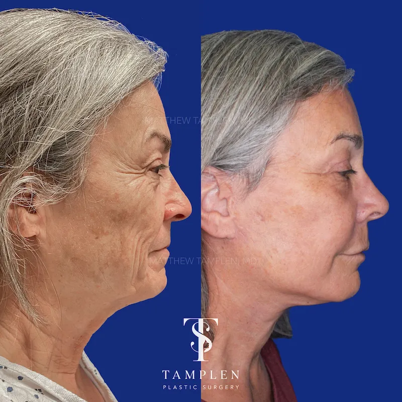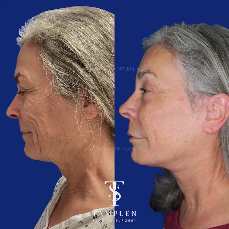 Beautiful results just 3 months after Lateral Brow Lift, Facelift, and Rhinoplasty. This patient looks more youthful and refreshed while still looking natural and not overdone. She loves her new neckline & refined nasal tip, and so do we!