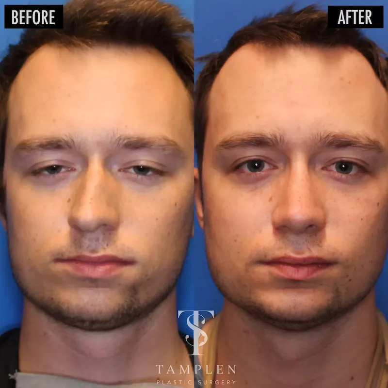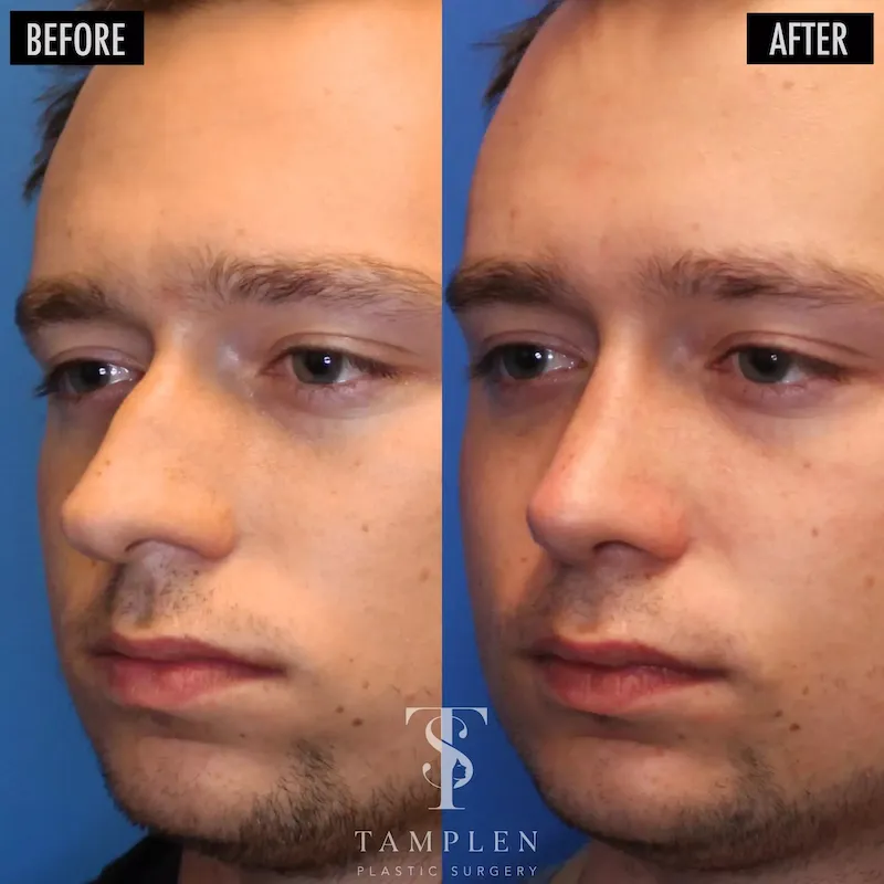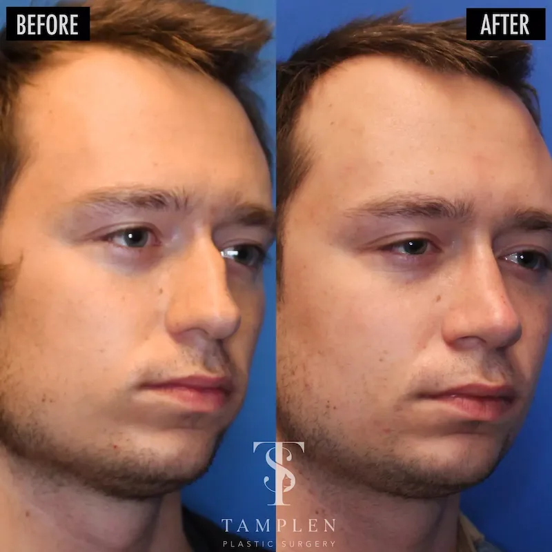 Male rhinoplasty is different - strong masculine features in facial ideals and making sure the nose is straight and not too turned up is critical. This happy patient of mine has a great result just 3 months after reconstructive rhinoplasty after a traumatic injury. The nose is now straight and well defined.
