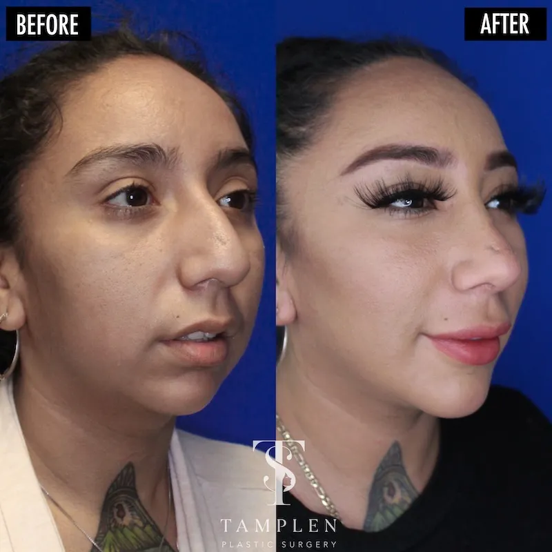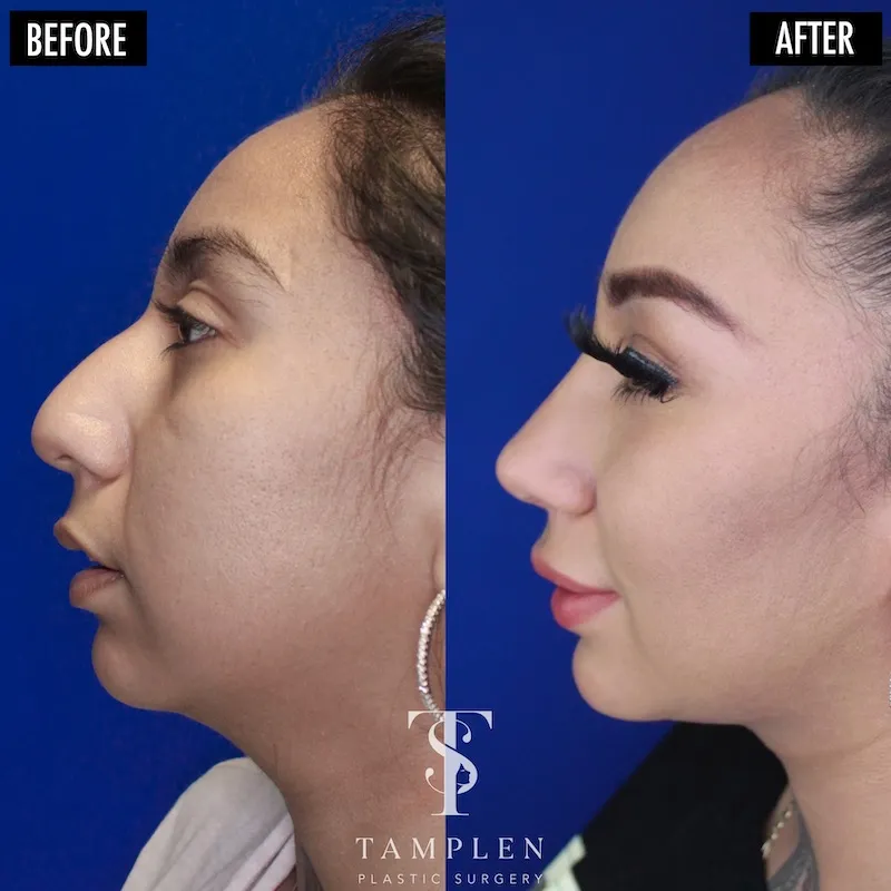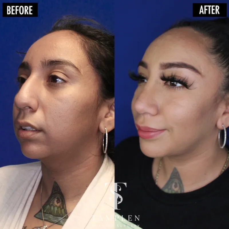 This patient is loving her new profile just 5 months after open rhinoplasty and chin augmentation. The face is more in balance and she’s breathing better than ever before. This patient loves her new look - amazing results!