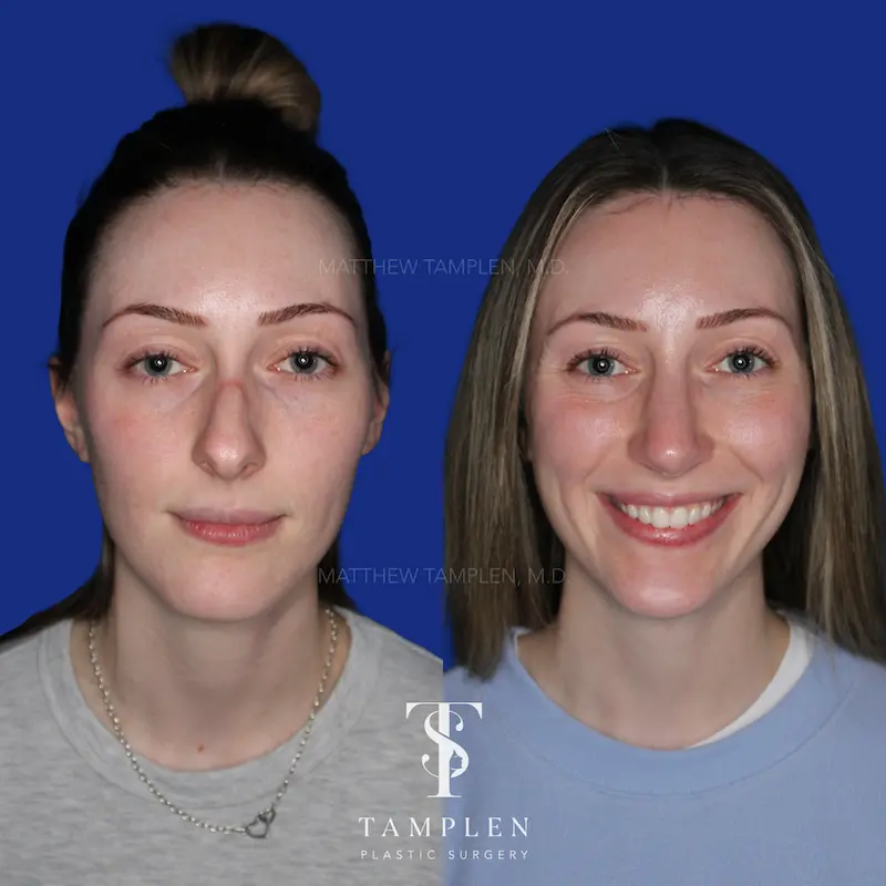 This patient is just 5 months after rhinoplasty. She came to me feeling her nose was too large and didn’t flow with her other delicate, feminine features. Her goals were a smaller, natural nose with a soft slope and better breathing. With my signature tip support technique, we achieved exactly that! Balanced, elegant, and functional.